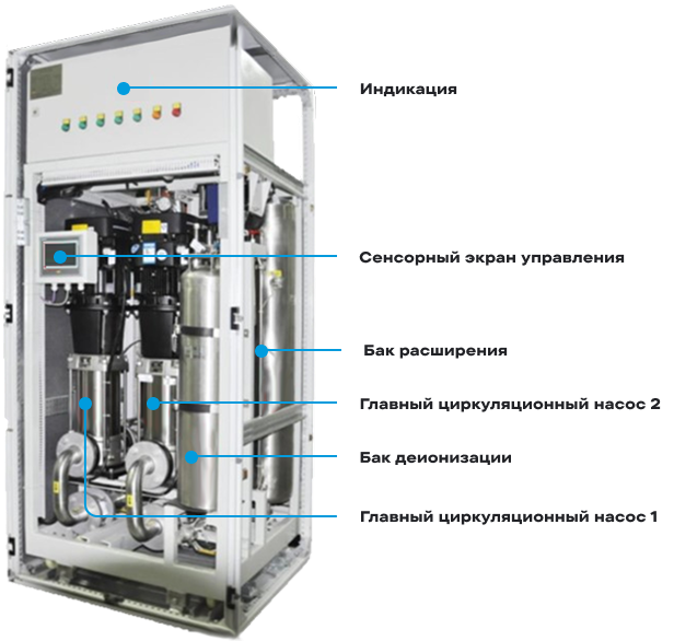 - Отказоустойчивая система охлаждения использует деионизированную воду